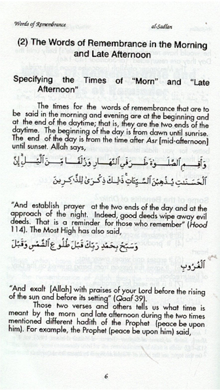 If a person acts by these deeds, as a believer and with sincere faith in them, he will have for him a fortress and citadel that will protect him from shaytan and help him in repelling the evil of jinn and the wrongdoers of mankind. When these words are stated with faith and conviction, they become a shield for him from every evil and disliked aspect. For that reason, one must become habitual and consistent in the saying of these words of remembrance. Furthermore, they must be said with a heart that is attentive and tranquil.