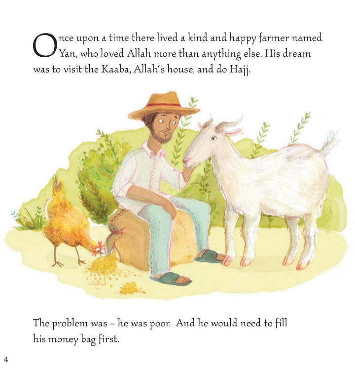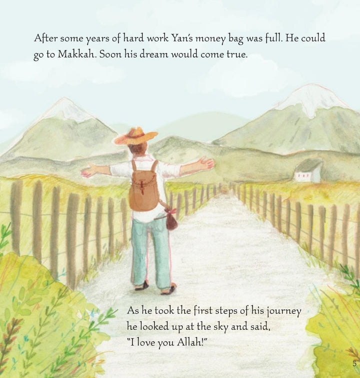 Yan is a big-hearted young man determined to perform Hajj, the pilgrimage to Makkah. But first, he must work hard on his farm and fill up his money bag for the journey. Despite the trials he faces on each unsuccessful trip to the K'abah, Yan’s helpful nature, compassion, and generosity enable him to succeed in the end.